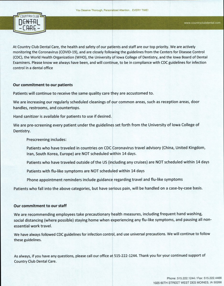 Country Club Dental Care is part of a trusted. Here at Country Club Dental Care we are committed to ensuring your dental experience is affordable comfortable and personalized. We offer general dentistry for all ages and want to be your familys trusted dental practice for years to come.
